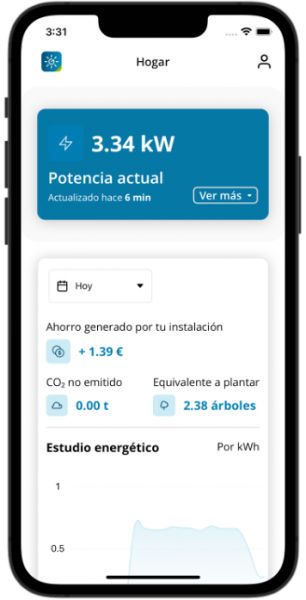 La plataforma diseñada permite conectar las placas solares de Contigo Energía con sus clientes, extrayendo y registrando los datos de producción, autoconsumo, excedente y ahorro de una instalación particular. Estos datos recogidos remotamente se muestran en la App en tiempo real, dando mayor visibilidad de la instalación a sus clientes.